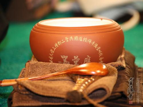 开堂大师父芳振律师在药师殿开示:"受过沙弥戒之后,我们就要用出家人专门的饭碗——钵来吃饭了。过堂的时候,持钵展钵、洗钵弃水,都会有规矩程式,尽显佛家威仪,可以让见者生起对佛法的希求心。所以,在戒期当中把钵用好是很重要的。"