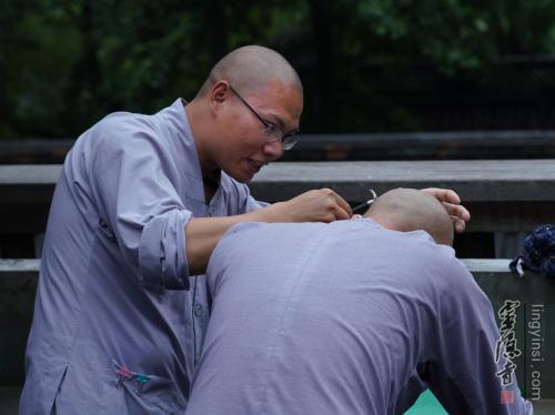 下午,诸新戒剃头沐浴,为明日初坛受沙弥戒做准备。