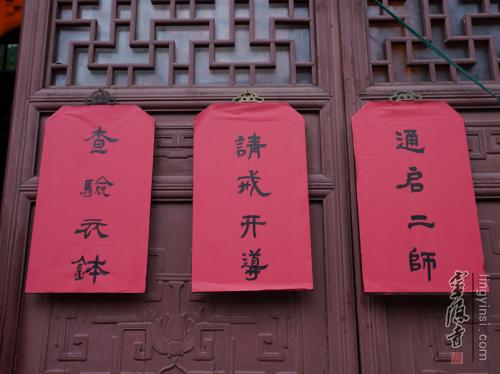 "通启二师"、"请戒开导"、"查验衣钵"佛事牌