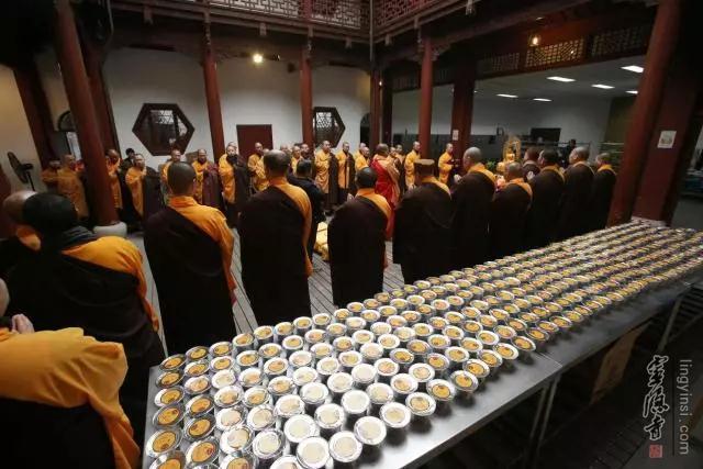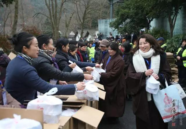 在纪念释迦牟尼佛成道的日子里,杭州灵隐寺向社会大众奉施腊八粥,共同分享佛陀成道之喜,学佛之理,行佛之道。众人以传供方式感恩佛陀、感恩三宝,同时祈愿佛日增辉、法轮常转、世界和平、海众安和。