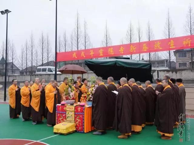 2018年3月7日,杭州灵隐寺依据佛教传统举行戊戌年新春放生祈福法会,灵隐寺常住法师、居士善信200余人参加了本次法会。30000余尾水族物命纳受三皈依,于钱塘碧波江水竞自由。灵隐寺通过放生法会践行佛教对众生平等精神的慈悲解读,敬畏生命,尊重生命,倡导科学放生。