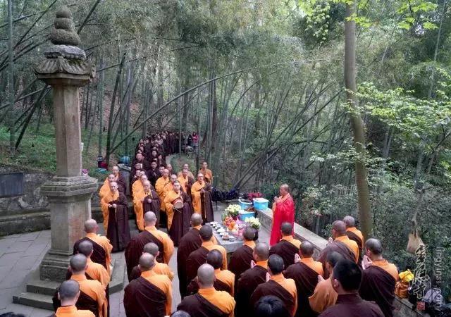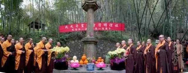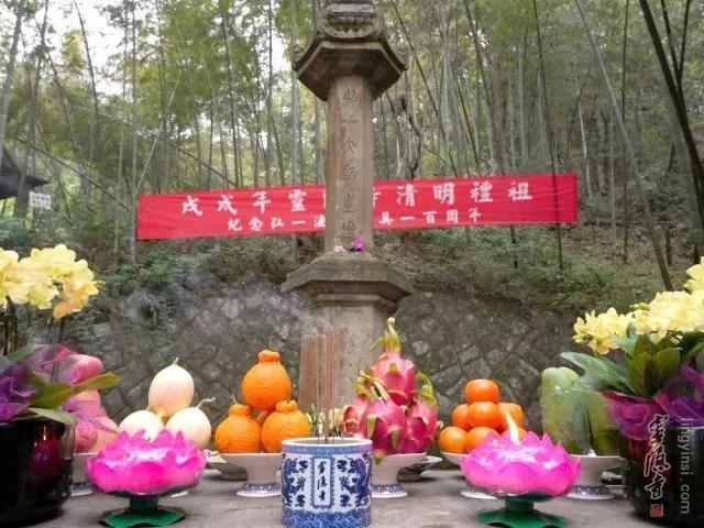 2018年4月5日,中国传统节日清明节,灵隐寺法师、居士举行礼祖法会,前往杭州虎跑祭扫弘一法师舍利塔墓,缅怀一代律宗高僧弘一法师的法乳深恩。虎跑寺是弘一法师落发剃度之地。清明时节,灵隐寺法师居士与弘一法师塔墓前礼祭这位杰出的僧人代表,表达对一代律宗祖师大德的深切缅怀。灵隐寺两序大众于杭州虎跑寺旧址弘一法师舍利塔前扫塔祭拜,上供诵经,恭敬瞻礼。
