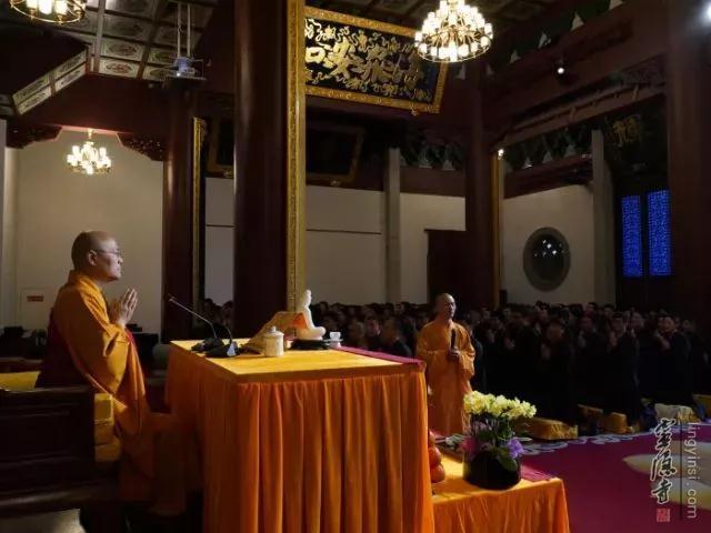 2018年2月23日,农历正月初九,灵隐寺举行戊戌新春斋天祈福法会,灵隐寺两序大众、十方善信齐聚大雄宝殿,虔诚设供焚香,诵经礼拜。祈愿海众安和,国泰民安,风调雨顺,人民安乐。以参加斋天法会之殊胜功德,回向大众福慧增长,六时吉祥。