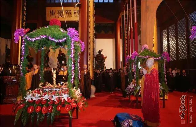 2018年5月22日,农历四月初八,释迦牟尼佛诞辰日。凌晨四时三十分,杭州灵隐寺钟鼓齐鸣,梵音缭绕,佛诞日浴佛祈福法会在灵隐寺方丈光泉大和尚主法下,四众弟子合掌礼赞,虔诚唱诵,感恩本师释迦牟尼佛降生娑婆世界,为三界导师,教化众生,苦海作明灯,照破千年暗夜,妙法度群生,人天同欢喜。