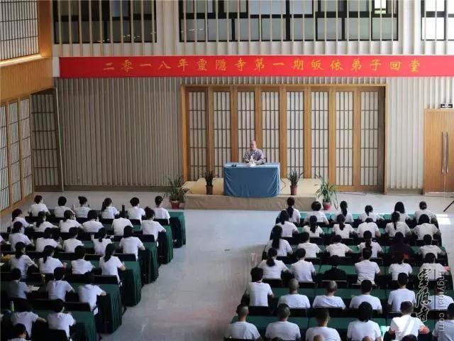 灵隐寺2018年第一期第二期"皈依居士回堂"活动分别在6月15-18日和 6月22-25日开班举行。回堂活动期间,居士们学习了穿着海青、上香礼佛等佛门礼仪,并在法师的带领下学习过堂、念佛、受戒以及寺院生活的基本仪轨;与常住法师们一起做早晚课诵,体验青灯古佛、晨钟暮鼓的出家寺院生活;还以听法师开示、抄写佛经等形式,体悟佛陀无上甚深妙法,澄净自心,最终如律如法信受殊胜,于一日一夜受持"八关斋戒",由戒生定,因定生慧。用一份放下外缘的清静,安顿身心,体会佛教修学的功德利益。