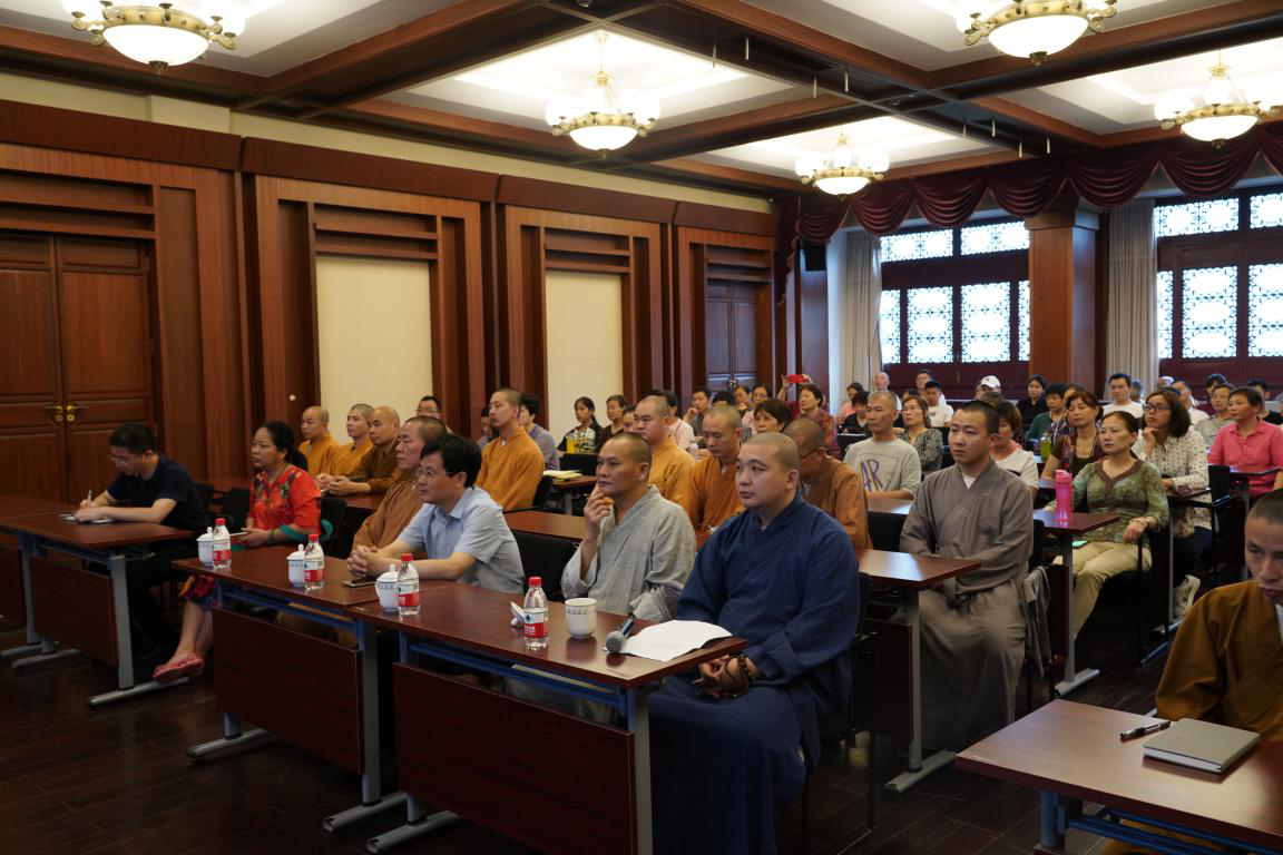 6月22日上午,灵隐寺在华严阁三楼举办"2018年宗教政策法规学习月"普法专题讲座。杭州市民宗局政策法规处处长雷俊峰,杭州市民宗局副调研员雷青,灵隐寺监院觉恒法师、义广法师、智光法师,以及灵隐寺常住法师、职工和志工参加了此次普法讲座。