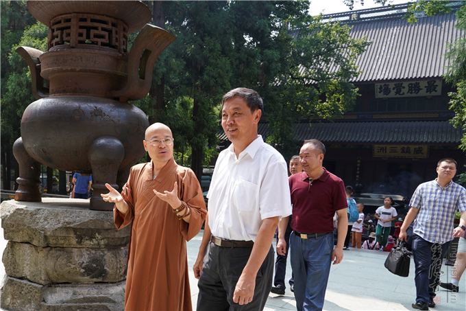 2018年8月10日上午,杭州市委常委、副市长刘德生专程来灵隐寺调研工作,市民族宗教事务局局长邵根松、市委统战部副部长俞永明、市委统战部民宗处处长王柱富、市民族宗教事务局宗教处处长胡胜军等陪同调研。杭州市佛教协会会长、灵隐寺方丈光泉法师以及副会长智圆法师、戒兴法师、念顺法师、印旭法师、惟尘法师以及市佛协秘书长钱俭忠等一起参加调研。