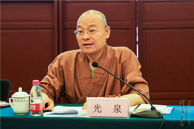 法师代表杭州市佛教协会向刘德生副市长作了杭州市佛教工作基本情况的汇报。光泉法师介绍,近年来,杭州佛教界在市委、市政府的重视关心和支持下,积极践行社会主义核心价值观,爱国爱教,认真贯彻落实党和政府宗教信仰自由政策,坚持佛教中国化方向,积极践行人间佛教,充分加强自身建设,正确履行宗教的社会责任,在思想建设、组织建设、文化建设、基础建设、慈善公益、对外交流等方面都取得了较好的成果,充分发挥了桥梁纽带作用。今后将继续做好加强现代僧团建设、佛教文化教育的发展、平安寺院建设、推进市属寺院、佛学院等建设管理工作。