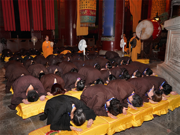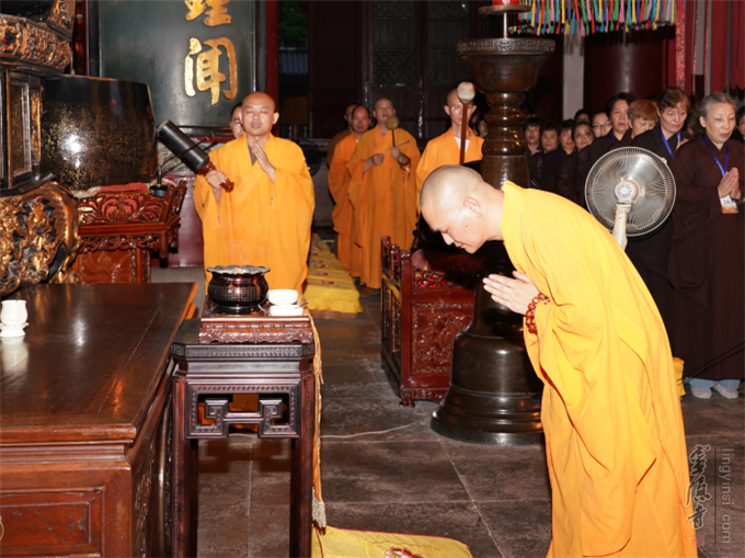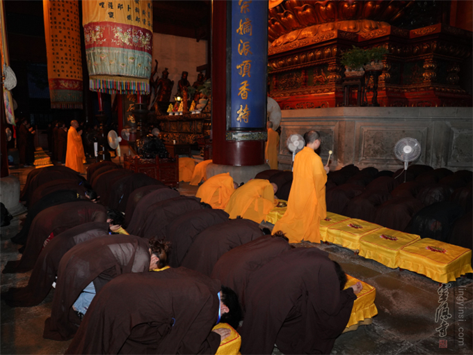 8月11日晚,杭州灵隐寺组织志工举行忏摩共修。以忏摩因缘,引导大众真诚忏悔往昔罪业,祈求三宝加被,清净身心,违缘消除,善缘增长。