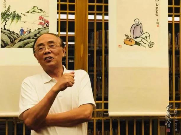 现场,观看完于杭州灵隐寺走廊和云林图书馆内布展的漫画,宋雪君指着图书馆内其中一幅上角题写"跌一交且坐坐"的漫画表示,这是他最喜欢的一幅画之一,寥寥数笔,背后寓意深刻。