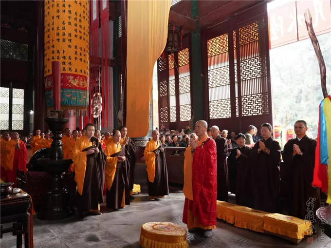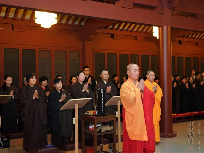 上午10:05,应护法善信之请,灵隐寺监院义广法师受方丈和尚委托,代和尚上堂说法,开示佛理。义广法师在大雄宝殿登坐宣说法语云: