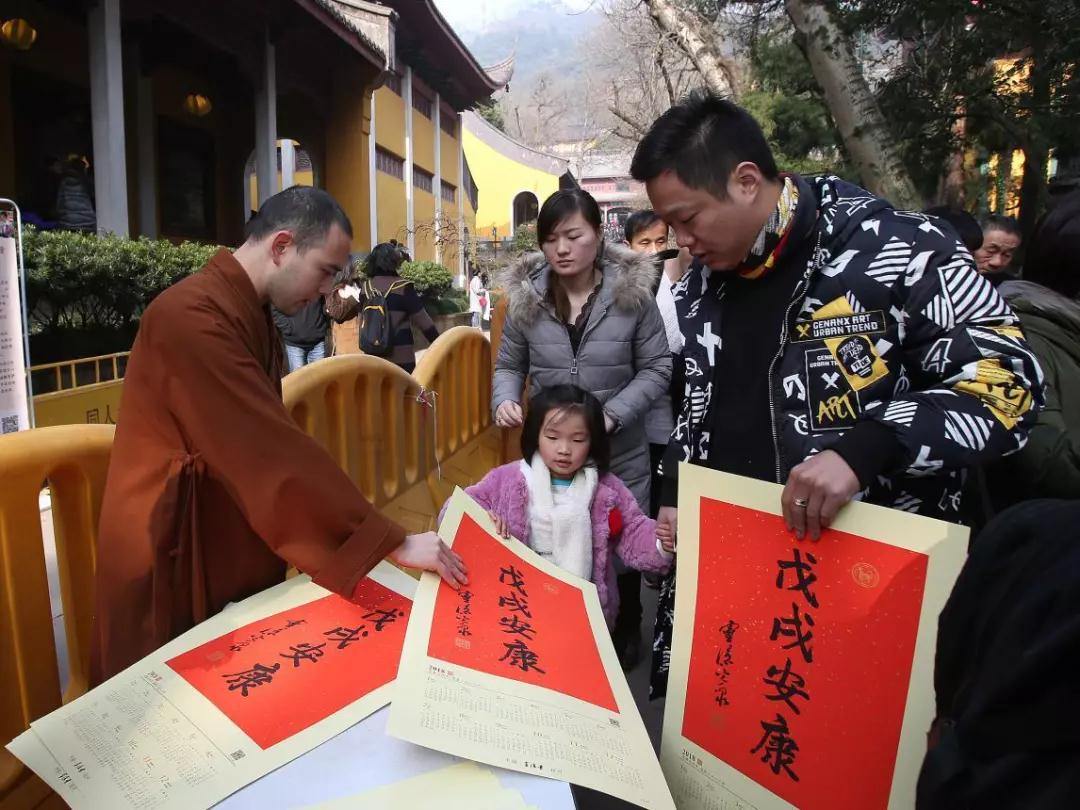 在我国,贴窗花、挂春联是民众迎接新年的重要民俗。如今,家家户户到杭州灵隐寺迎请方丈光泉大和尚亲手题写的新年祝福年历,已成为了杭城百姓迎接新年必不可少的文化习俗。