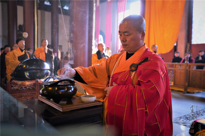昨天晚上6点许,本次戊戌冬佛七法会在药师殿内举行了熏坛洒净仪式。僧俗大众近百人同声随维那师举腔唱赞、讽诵真言;主法法师灵隐寺监院义广法师拈香礼拜、洒净加持,祈愿道场清净庄严。