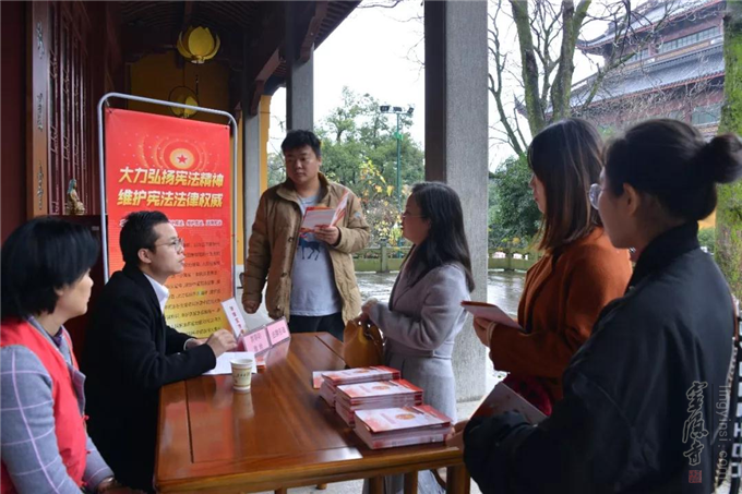 自"十百千万"普法工程启动以来,杭州灵隐寺结合时代主题,按照省市民族宗教工作部门和杭州市佛教协会的要求,强化普法工作机构、机制建设,夯实普法工作基础。立足寺院实际,认真落实普法的各项工作,开展以《宪法》为主题的系列普法宣传教育活动。