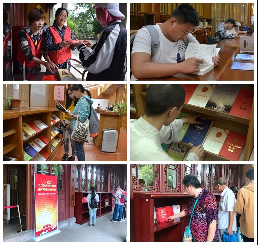 1、利用云林图书馆,开展普法宣传。在图书馆开辟法律角、法律图书专柜、法律学习阅览室,对广大信众和游客开放,让游客有休息之处,又有法律书籍可读,同时还免费分发普法宣传小手册。