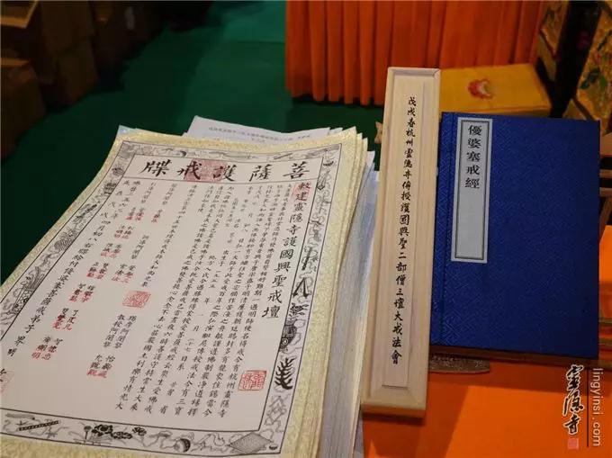 值得一提的是三坛大戒。4月23日至5月22日,灵隐寺在政府和各级佛教协会的支持下,圆满举办传授护国兴圣二部僧三坛大戒法会。三百多位戒子得清净戒体,喜获戒牒。传戒期间还如法传授了1000名在家戒,其中五戒和菩萨戒各500名。全寺僧众全力以赴,维护坛场清净。戒场管理有序,正确引导,为佛教界培养荷担如来家业的接班人,开创"东南佛国"如法戒风。