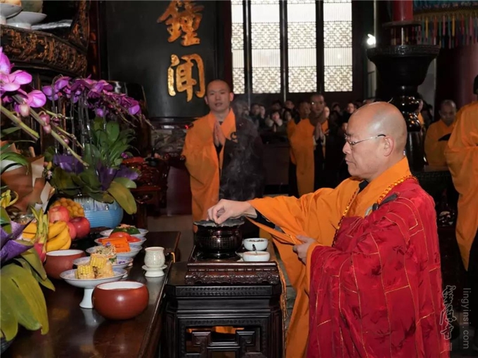 法不孤起,遇缘则生。2019年1月6日(戊戌农历腊月初一),杭州灵隐寺在大雄宝殿举行上堂大斋法会,灵隐寺方丈光泉大和尚拈香主法、上堂说法、广度有情。