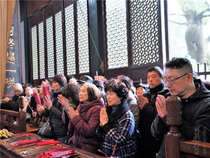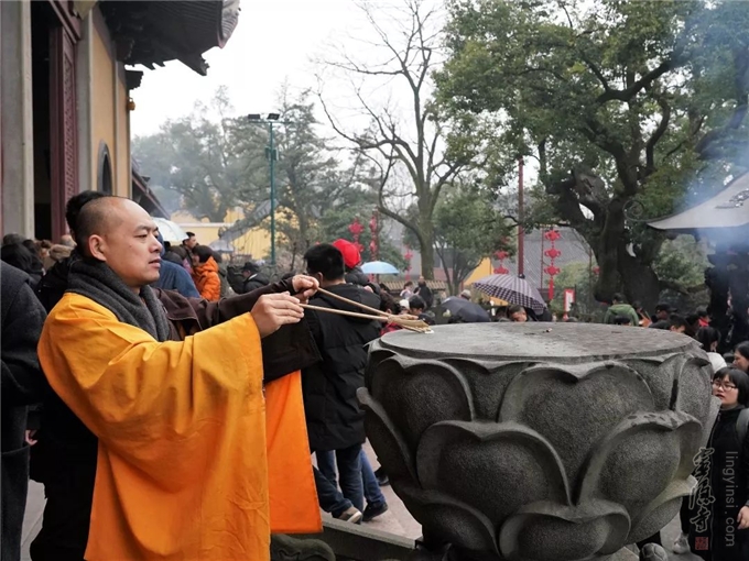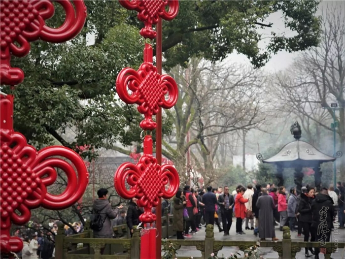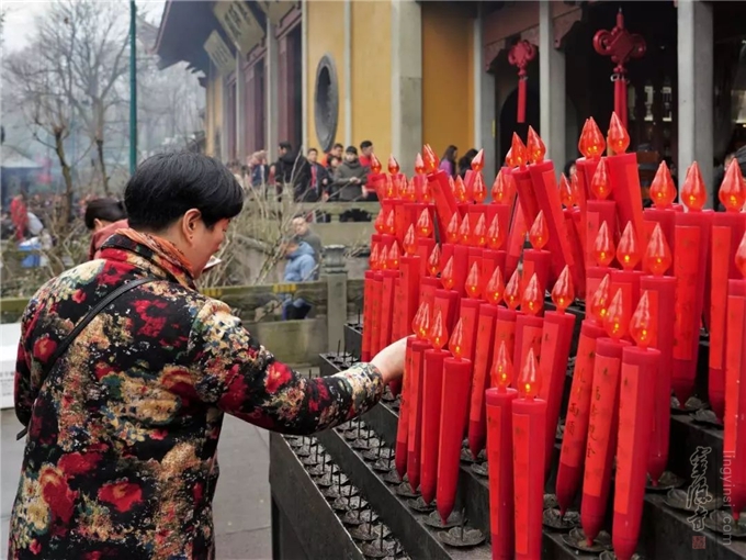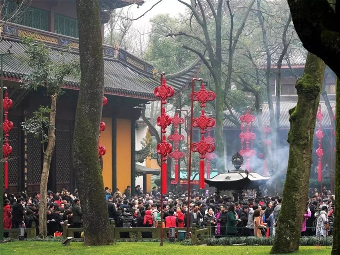 在杭州,香火最盛的寺院是灵隐寺。许多人竞相赶早,争着在大年初一到灵隐寺上第一柱香,认为这样可给一年带来好运。