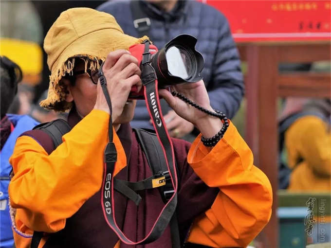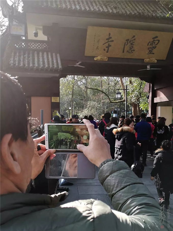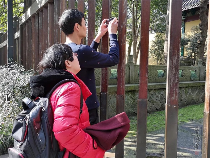 这位来自内蒙鄂尔多斯的游客说,他十多次来杭州,每次都会带着摄像机来灵隐寺拍点什么,沾点灵隐寺的灵气带回去。