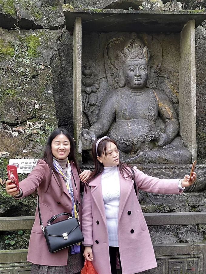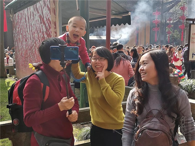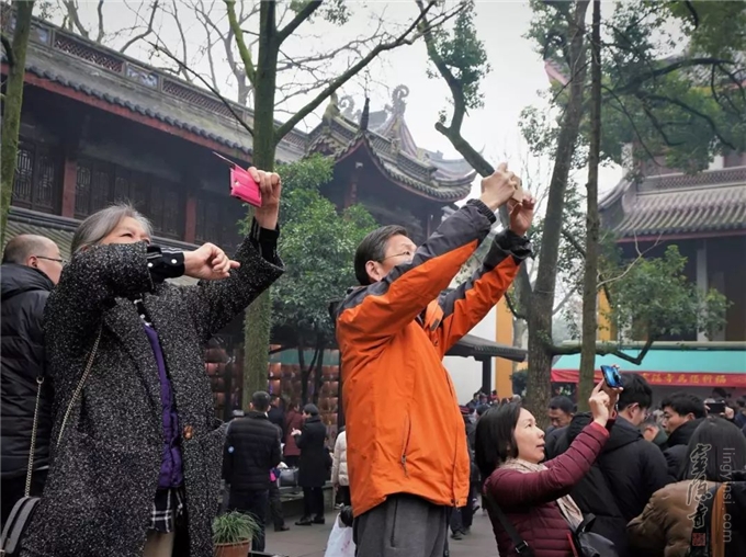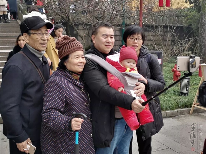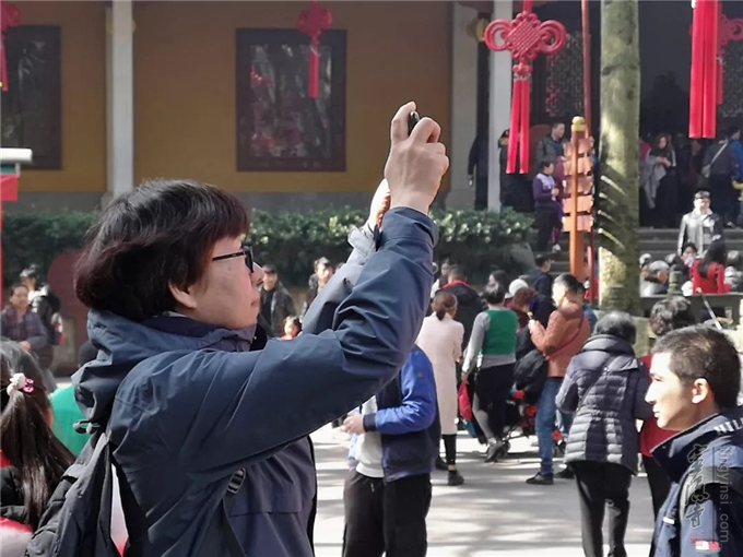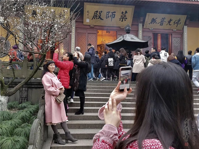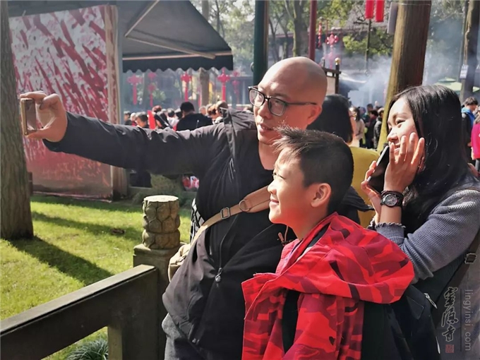 第三类是来祈福和游玩的。灵隐寺是杭州著名的旅游景点,能来寺院就能沾点喜气和灵气。游客们走到哪就拍到哪,玩得就是心情。