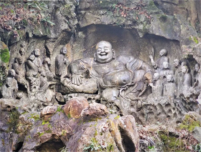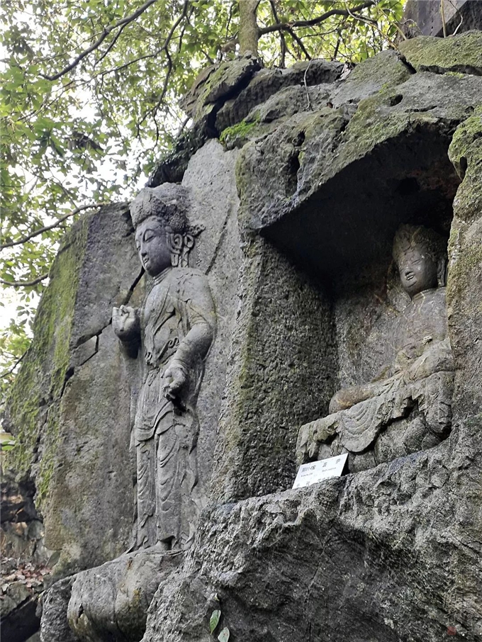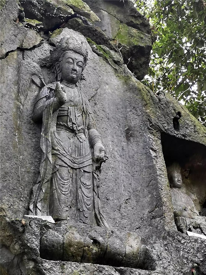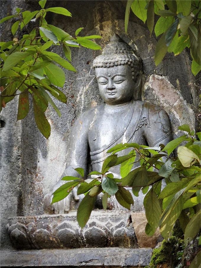 灵隐寺的案山飞来峰以仙灵的秀逸深隐在群峰林泉之中,似万佛来朝,虽经受时间沧桑的变迁,千年风骨却不改当年。