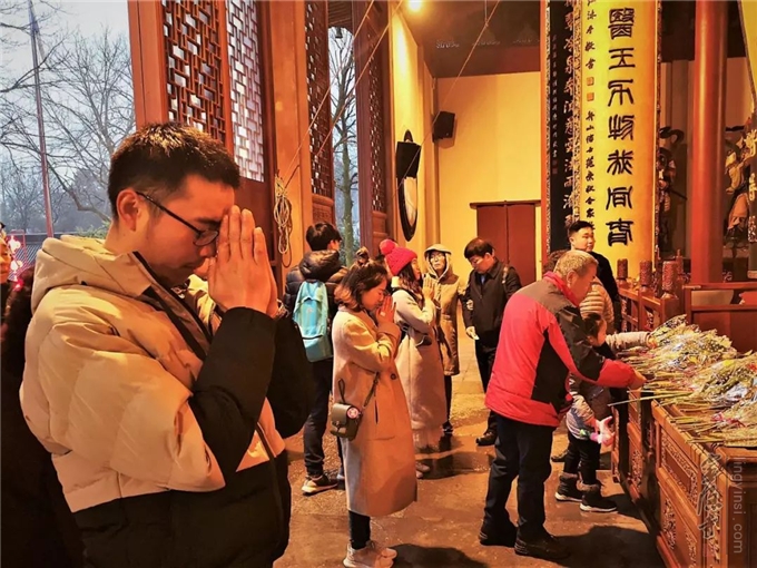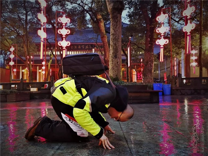 这位恭敬礼拜的背包客来自合肥,晚上要坐动车赶回去。他在杭州已经去过六个寺院敬香,灵隐寺是第七个寺院。