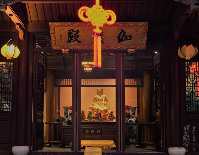 药师殿是灵隐寺的第三重大殿,殿中莲台座上结跏趺坐的是消灾延寿药师佛,救度众生,离苦得乐,解除病痛。善信鲜花供养,恭敬合掌礼佛。