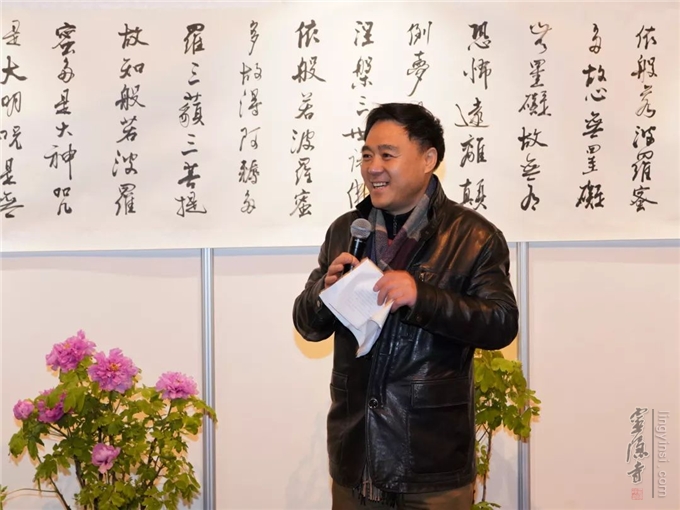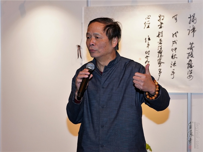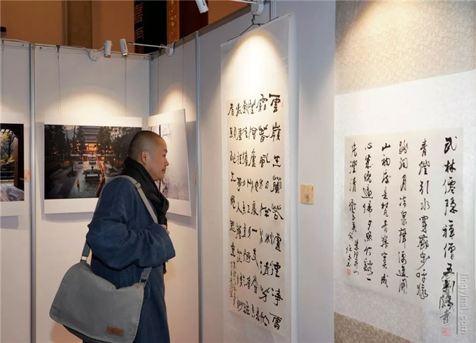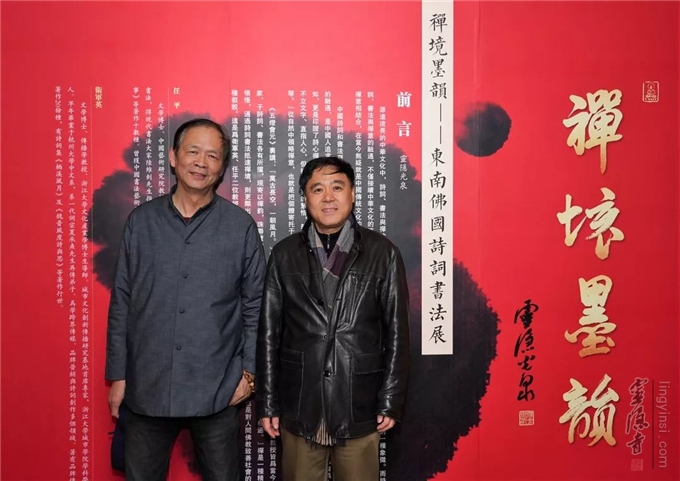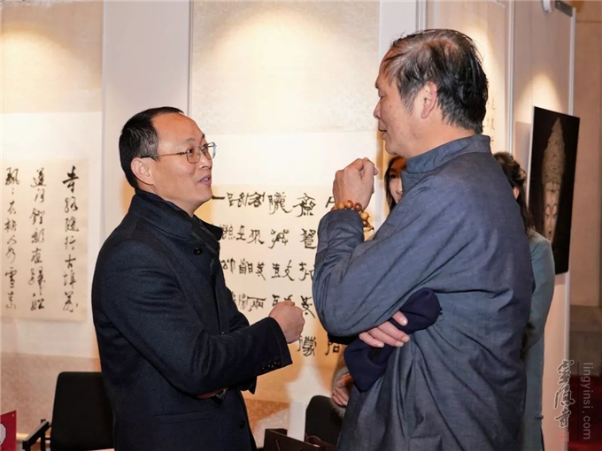 灵隐寺方丈光泉大和尚参加开幕式活动,并对两位学者联手办展表示祝贺。光泉大和尚说:诗词、书法创作与禅意相结合,无疑是对中国传统文化继承和发扬的一种创新,杭州灵隐寺十分关注文化创新,并给予积极支持。