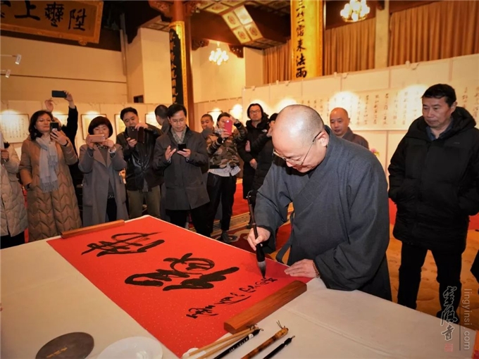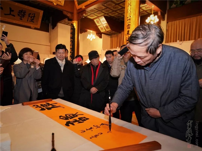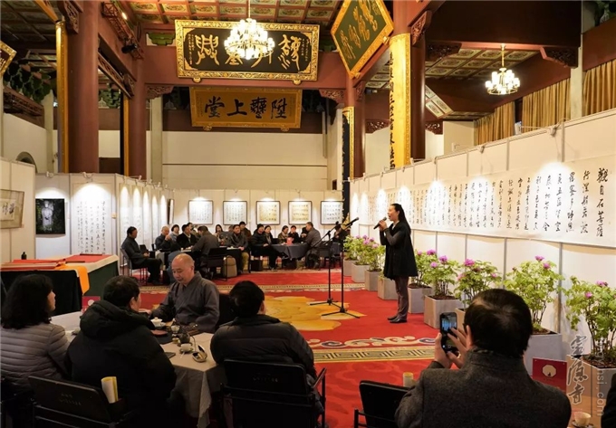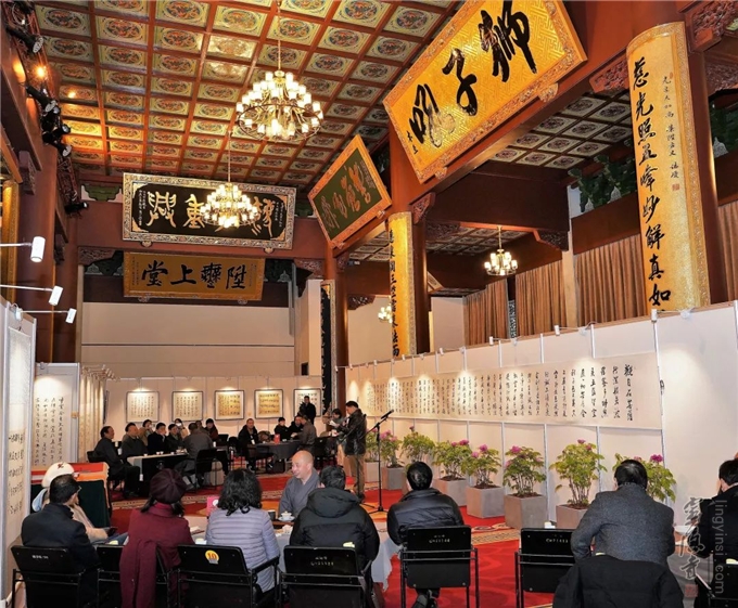 2019年2月9日上午,《禅境墨韵—东南佛国诗词书法展》开幕式暨艺术创作座谈茶会在千年古刹杭州灵隐寺直指堂举行。