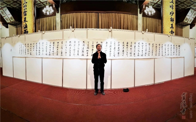 任平和他书写的七米书法长卷《心经》