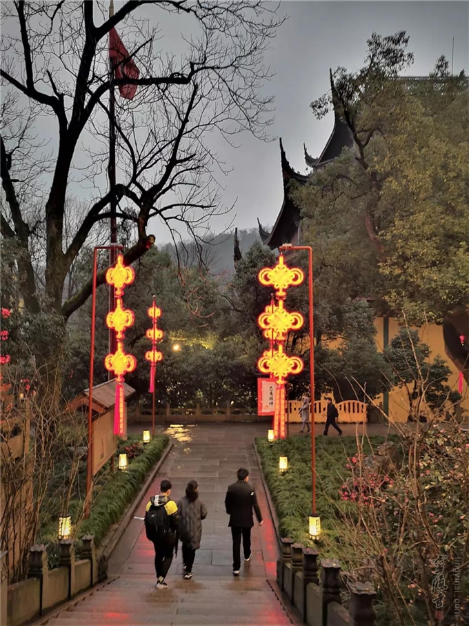 2019年2月19日(己亥农历正月十五)元宵佳节。为了方便游客赏灯点灯、祈福礼佛,杭州灵隐寺从正月十四傍晚起,至正月十五凌晨二时,对外开放。灵隐寺元宵亮灯,流光溢彩。