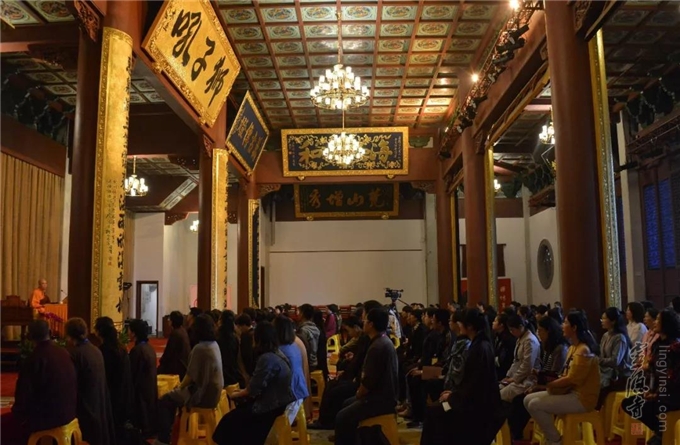 宏海法师在佛学专题讲座中以"人身难得,中国难生,佛法难闻"这三难为主题,为大众作精彩开示。