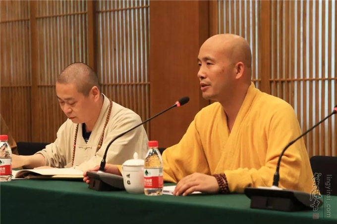 中国佛教协会副秘书长、中国佛教讲经交流基地主任光泉法师,中国佛教协会教务部主任、中国佛教讲经交流基地副主任长顺法师,浙江省佛教协会副会长达照法师等出席座谈会并讲话。