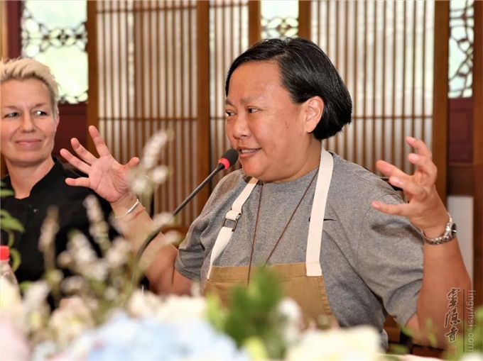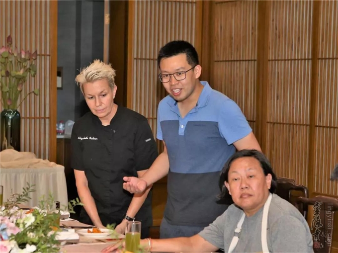 米其林大厨安妮塔·洛、耶鲁后勤顾问伊丽莎白·福克,与杭州灵隐寺斋菜制作大厨进行交流互动,就地取材,各自现场制作一道素食西餐。