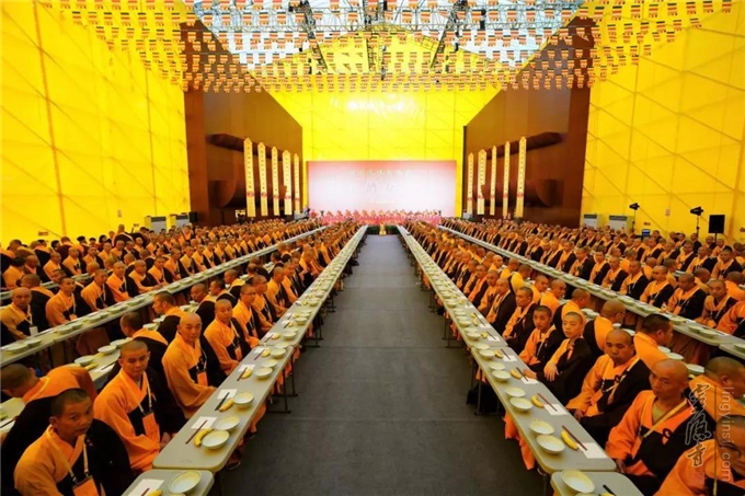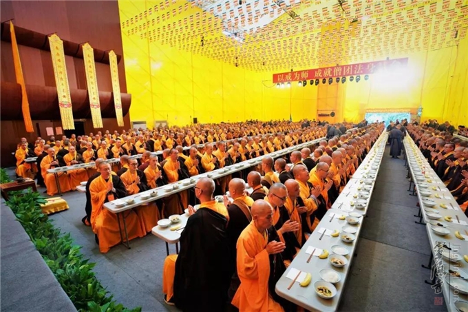 僧众大会之后,杭州市佛教协会举行了供佛法会、斋僧法会,与会僧众同堂用斋。斋僧过程秩序井然、殊胜庄严。