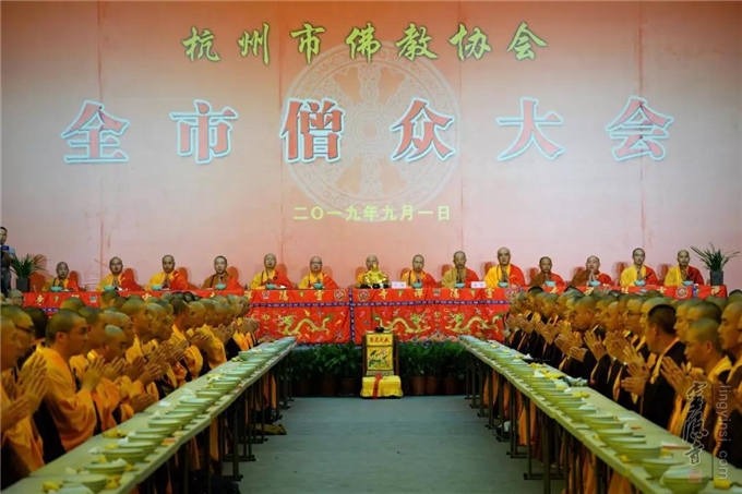 为深入学习贯彻习近平总书记新时代中国特色社会主义理论思想和党的十九大精神,进一步高举"爱国爱教"旗帜,坚持佛教中国化方向,提高全市僧众的综合素质,推进杭州佛教事业的健康发展,2019年9月1日,杭州市佛教协会在杭州灵隐寺隆重召开全市僧众大会。