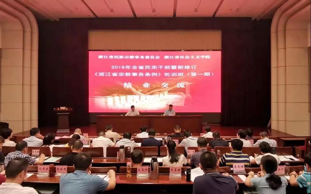9月2日至12日,根据省委组织部、省委统战部、省民宗委和省社会主义学院的安排,2019年全省民宗干部新修订《浙江省宗教事务条例》轮训班分两期在省社会主义学院举行。来自全省各市、县(市、区)民宗局负责人、业务骨干以及省宗教工作协调小组成员单位的干部共260人参加此次培训。省委统战部常务副部长王晓峰,省委统战部副部长、省民宗委主任楼炳文,省社会主义学院巡视员隗斌贤,省民宗委副主任振华出席并讲话。