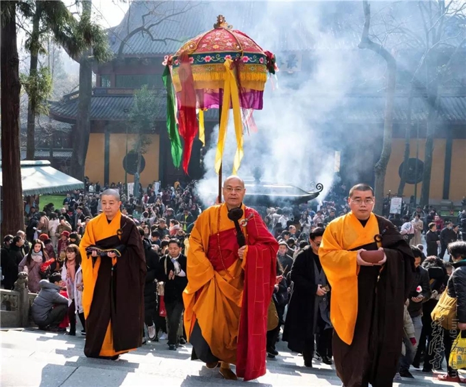 吉祥钟声迎来了新的一年。2020年1月1日,杭州灵隐寺在在大雄宝殿举行上堂大斋法会。灵隐寺方丈光泉大和尚拈香主法、上堂说法、广度有情。