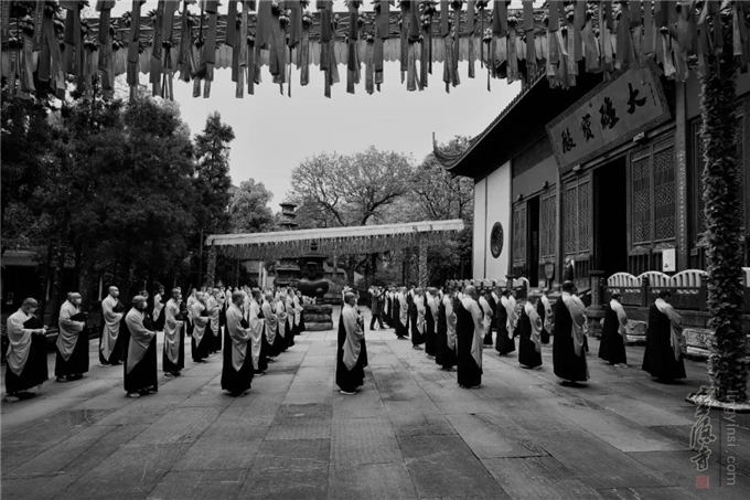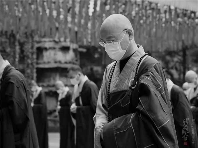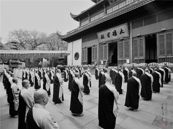 9点45分,杭州灵隐寺方丈光泉法师率灵隐寺全体僧众,在大雄宝殿前广场排班。光泉法师说:我们要铭记抗疫牺牲的烈士和不幸罹难的同胞.我们用特殊的方式,追思疫情中逝去的每一个生命,唯愿:逝者安息,生者坚强。
