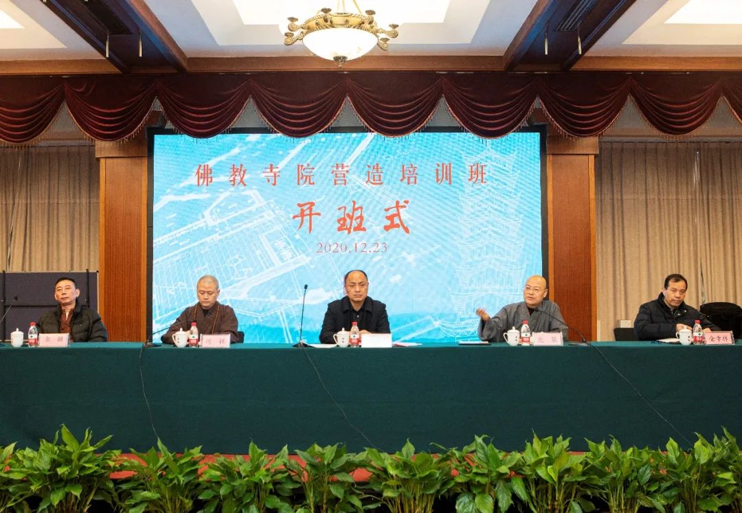 12月23日上午,浙江省佛教协会“佛教寺院营造讲座交流会”在杭州灵隐寺举行。浙江省民宗委副主任钟新章,浙江省佛教协会副会长光泉法师、可祥法师,秘书长金幸祥,浙江大学建筑系教授余健出席开班式。省佛协生态寺院建设安全专委会成员及由全省各地推荐的、有建筑营造方面专长的法师等共40余人参加了开班式。开班式由可祥法师主持。