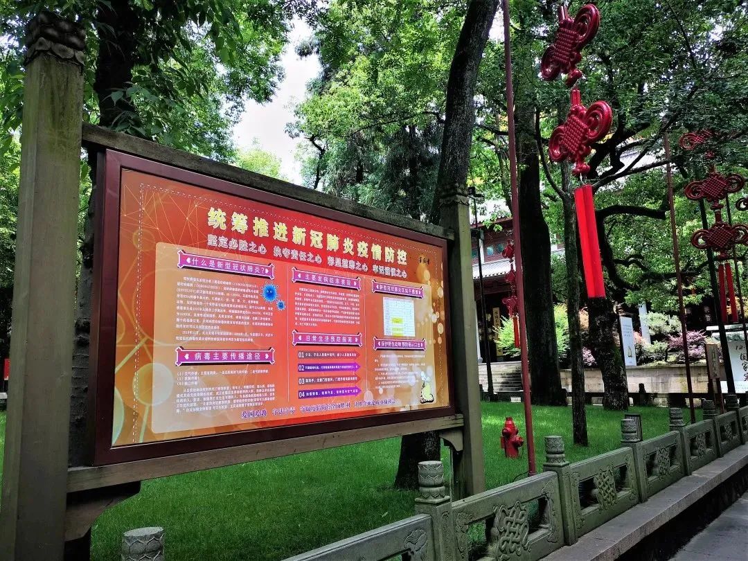 杭州灵隐寺加强疫情防控宣传,强化措施,严格管控,提高全员防控意识,加大防控力度,做好新型冠状病毒感染肺炎疫情应对相关工作,确保僧俗人员及广大信众身体健康。
