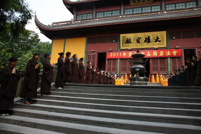 2011年8月14日,农历七月十五,灵隐寺在大雄宝殿举行"2011年灵隐寺盂兰盆法会",同时,为方便信众随喜参与,寺院特免费开放一天。