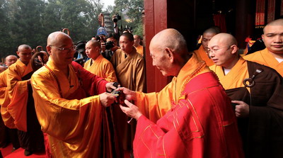 中佛协副会长道慈法师为光泉法师授衣