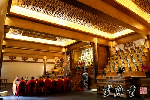上午,我走进水陆法会的法华坛(坛设月恒堂),法师们都在虔诚地诵念《法华经》。