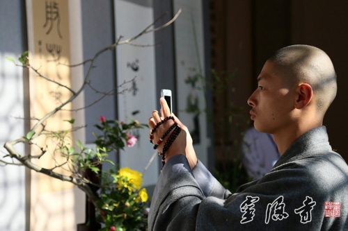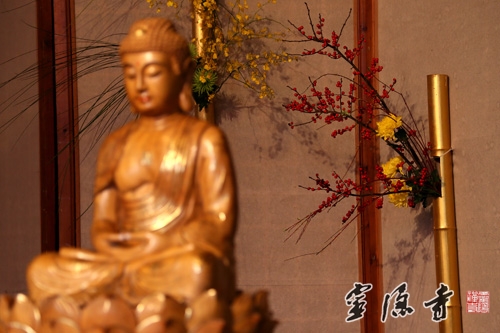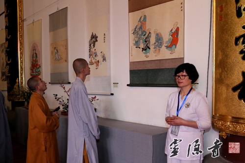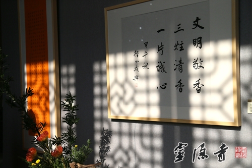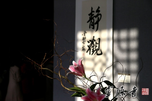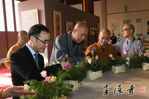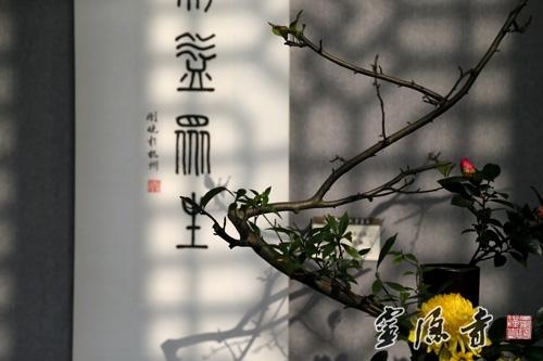 据悉,本次"心香"佛教书画展,展出的全部都是市属各大寺院法师、佛学院学僧的作品,共有60幅,其中书法作品33幅,书画作品27幅,篆、隶、行、楷、草种类齐全,书画作品风格多样、各有异趣。本次书画展还有一个特色,就是采用书画作品与插花相结合的形式,使古人称之为四大雅事的焚香、挂画、插花在有限的空间里完美融合,让广大香、游客在享受佛教书画艺术的同时,能够感受到以鲜花礼佛带来的那份宁静和心里的愉悦。