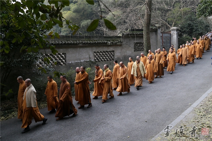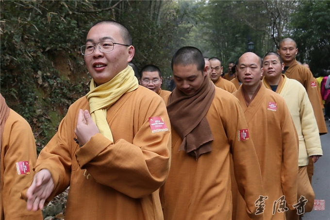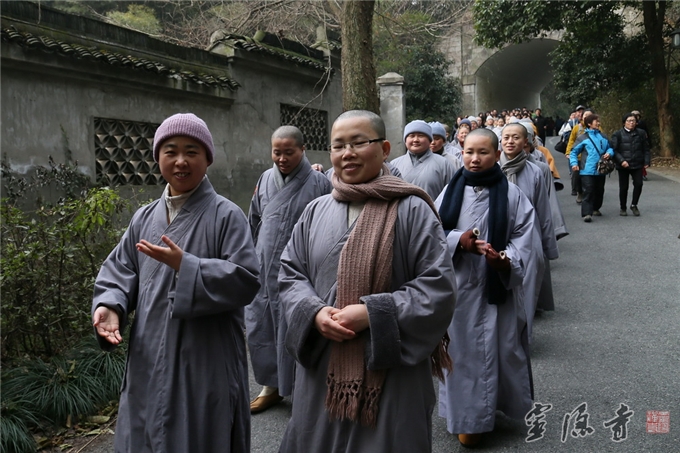 2014年12月27日上午8点半,杭州市民宗局党组书记杨志刚一声令下,拉开了由杭州市体育局、市民族宗教事务局、市体育总会主办,杭州市体育休闲行业协会、市登山运动协会承办,杭州佛学院协办的"2014‘日勤于步,健康永驻’全民健身走系列活动暨迎新祈福健步走"的帷幕。大家精神抖擞从杭州佛学院广场出发,迈着矫健的步伐,经小西天、中天竺法净寺,历时40分钟,最后至上天竺法喜寺。杭州灵隐寺法师们良好风貌,沿途吸引了不少游客的关注。