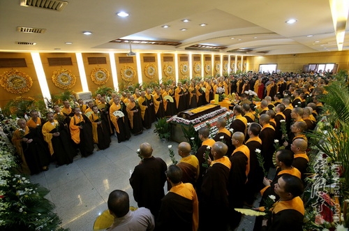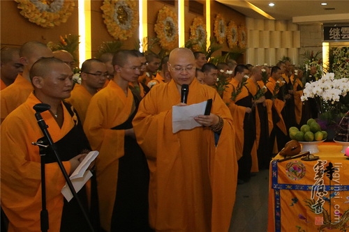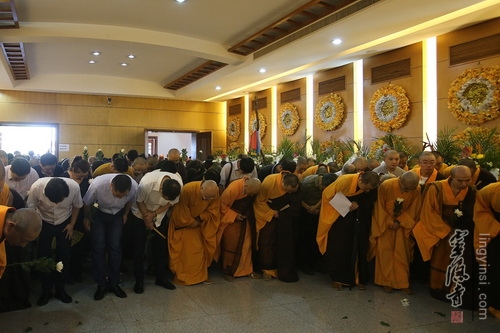 老和尚的生前同修同仁及信徒友人依次凭吊,与老和尚一一告别,誓愿护法弘法,不负长老之悲心宏愿。