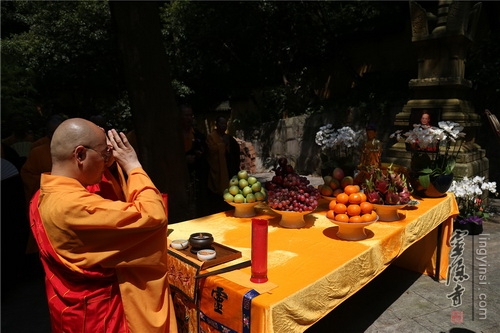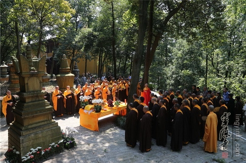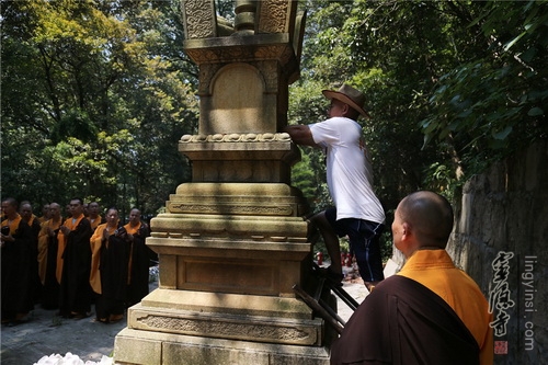 上午十点左右,继云长老灵骨入塔法会在灵隐寺塔林举行。由光泉大和尚主法,两序大众及居士信众,同声合十诵念,送老和尚最后一程;冲天焰起,尽是老和尚微妙音声,云烟起处,恍若老和尚慈悲笑容。在声声梵呗、袅袅佛音中,继云长老的舍利庄严入塔。