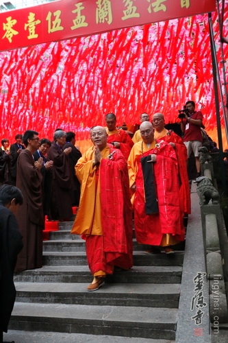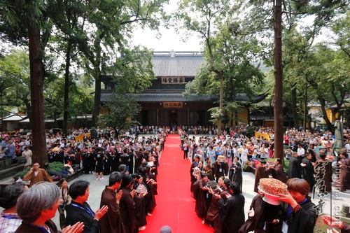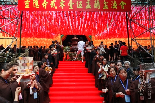 8月28日,农历七月十五盂兰盆节,灵隐寺隆重举行盂兰盆法会,以诵经、传供等方式,感恩佛陀教给众生如何孝敬父母六亲的功德,也以诵经礼佛的功德,为与会善信超荐七世父母及过往冤亲,并回向法界众生,同祈世界和平、人民安乐。