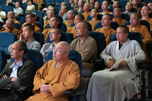 叶小文演讲时,铿锵有力,饱含爱国之情,深深感染了与会大众,会场不时报以热烈的掌声。来自浙江大学师生以及杭州佛教界代表,共400多人参加了本次活动。